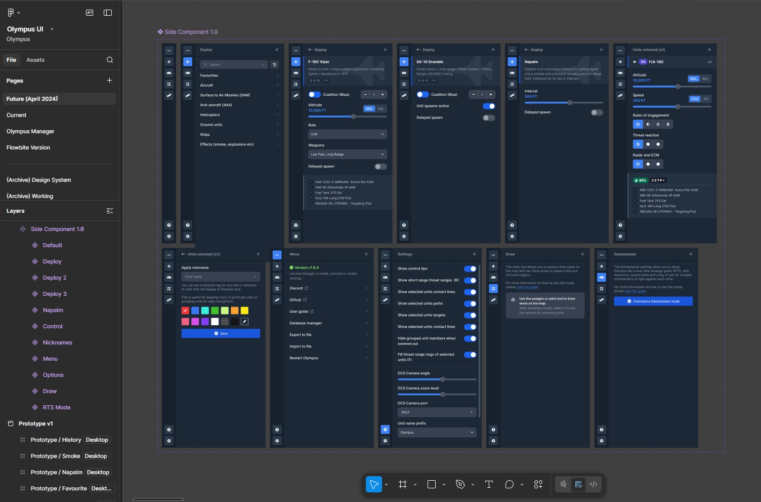 I prototyped the user interface using Figma, developed a flexible design system for reference and provided direct support for implementation. DCS Olympus is currently available to the flight sim community for free and supported on Discord.