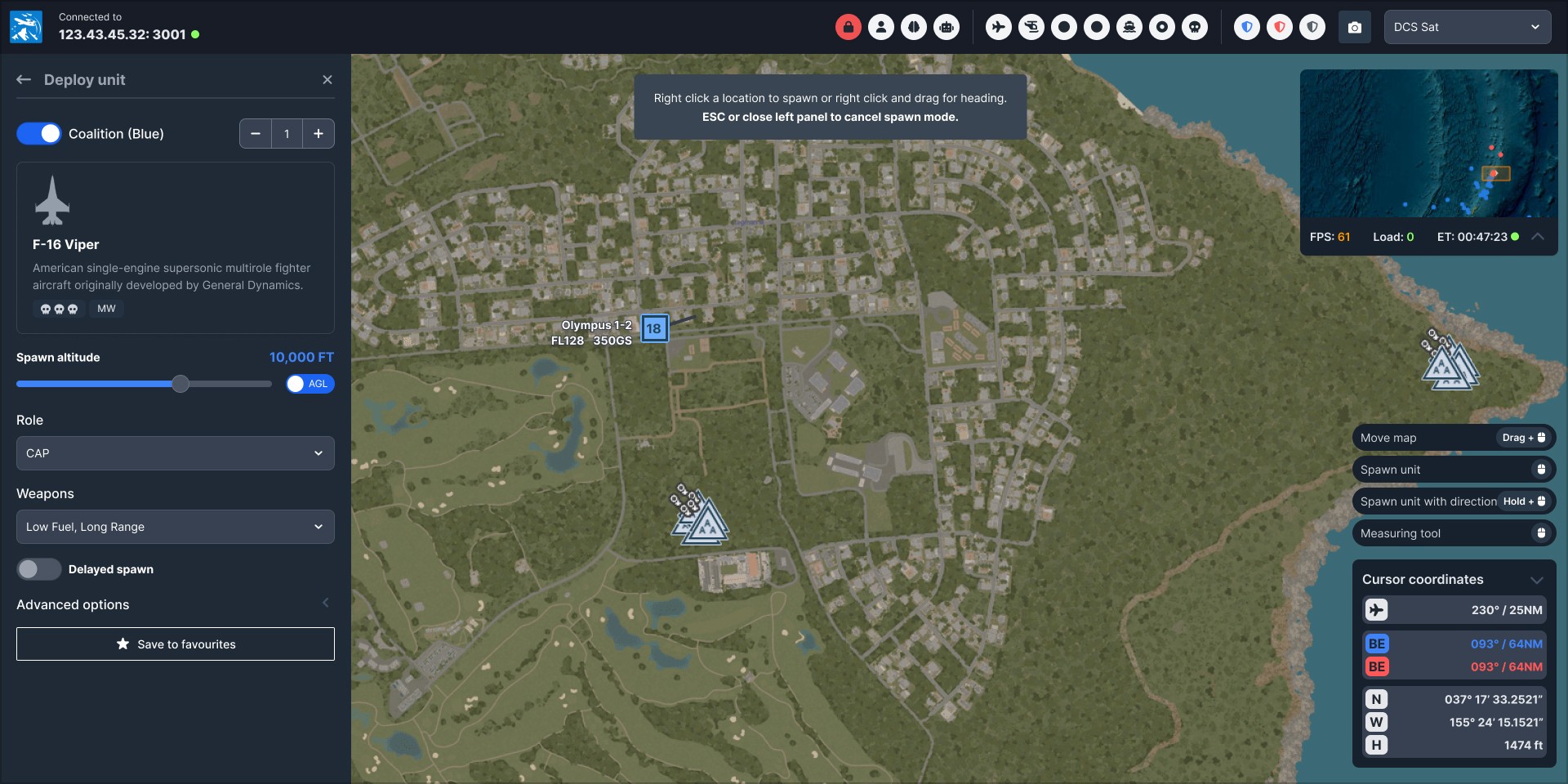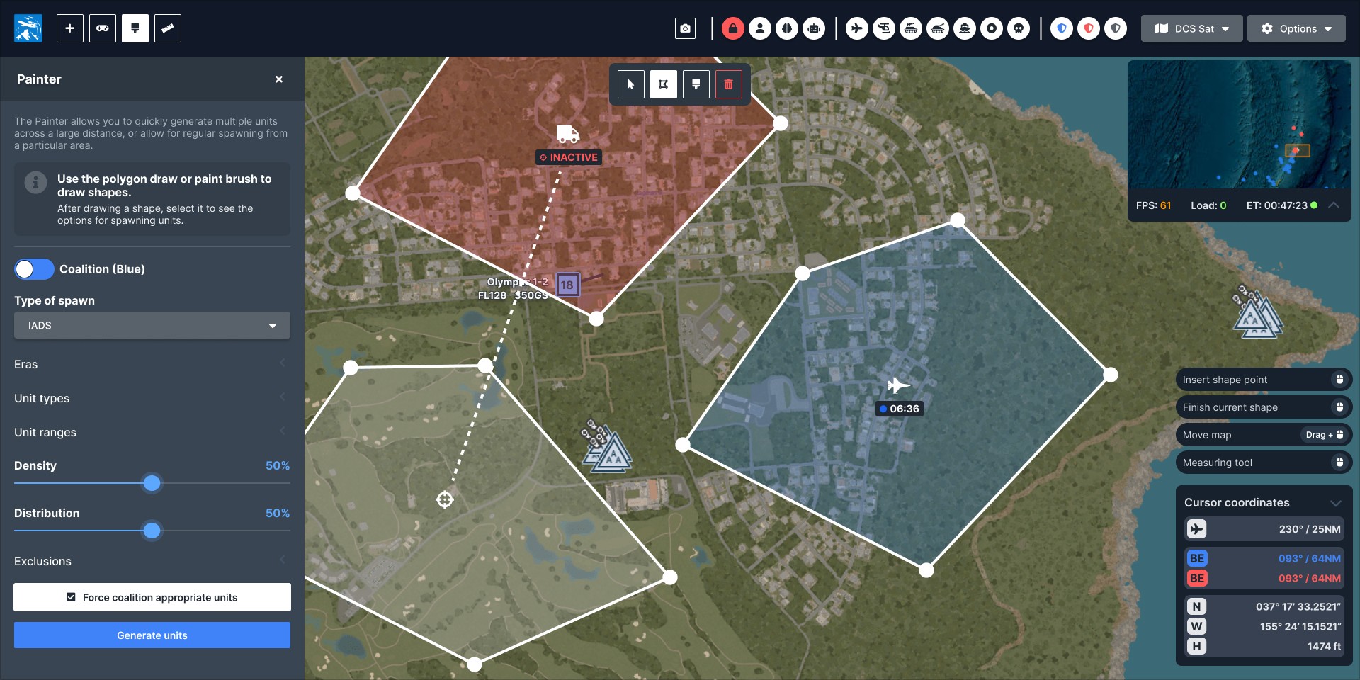 As a part of a community project, I worked as the primary UX UI Designer on DCS Olympus, a web based UI tool for the flight simulator DCS World that allows players to interact directly with units and aircraft and issue real-time commands. The interface gives players a level of control not previously available within the simulator, including unit spawning, unit control, automatic ground unit population, AI formations and transmittable audio.